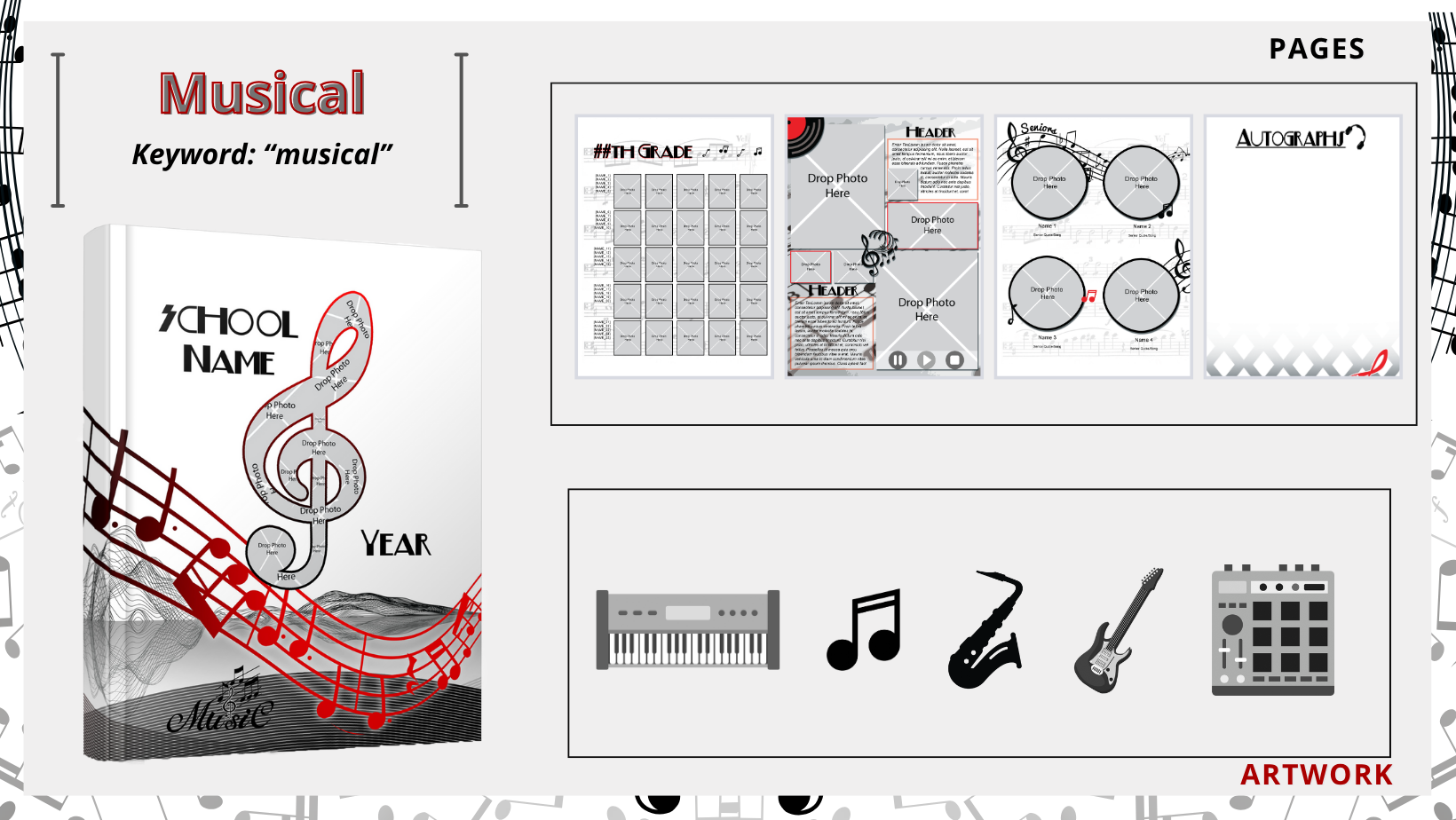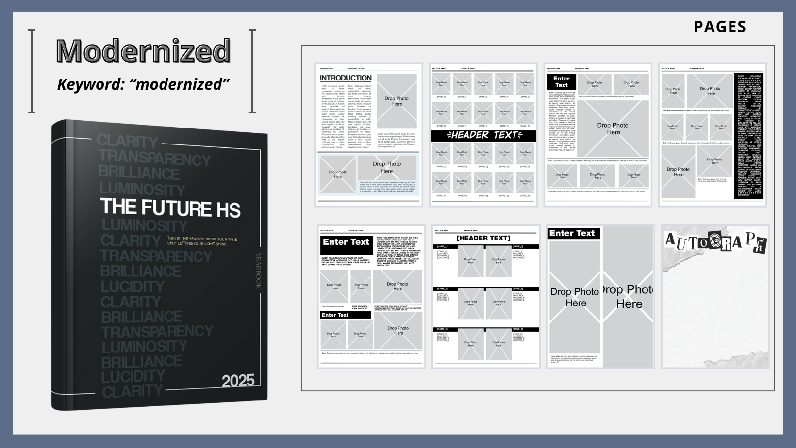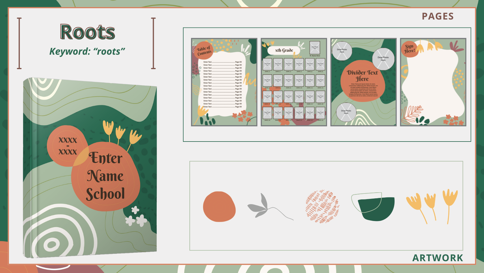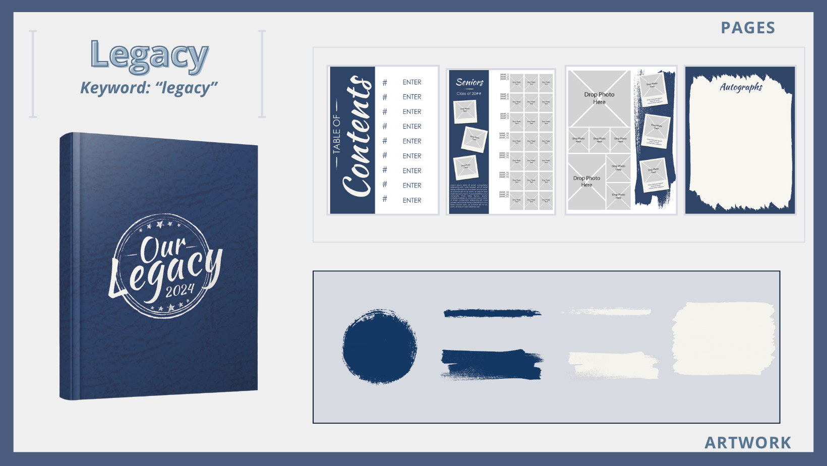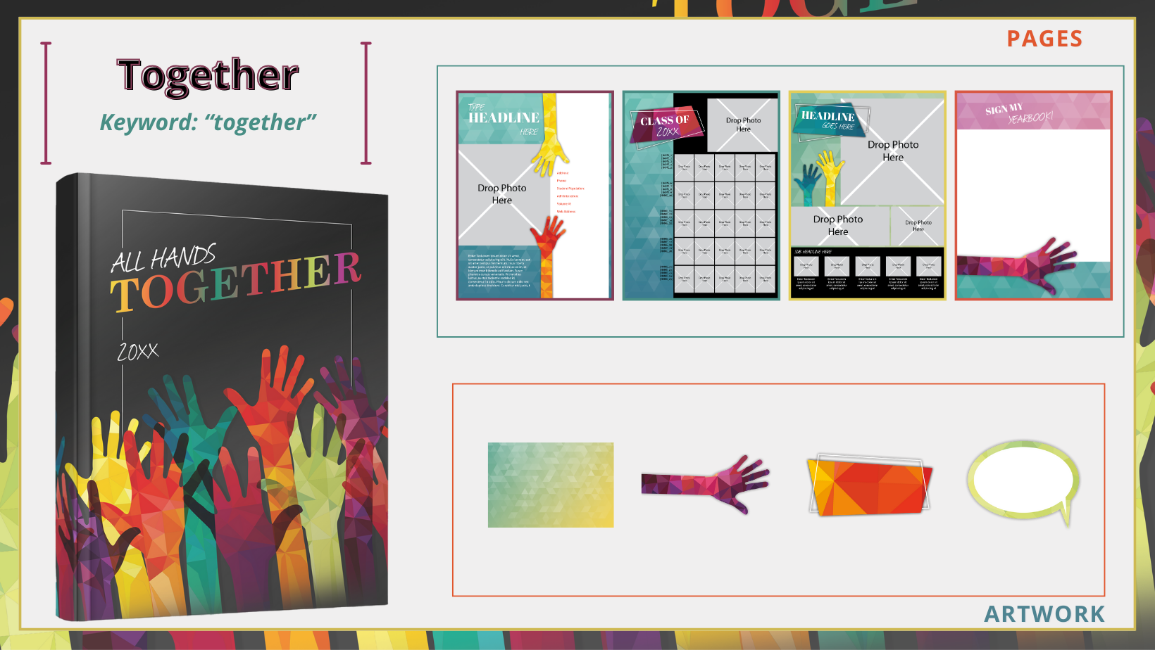 Entourage Yearbooks’ designer, EDOnext, has hundreds of templates and themes to customize and use for your yearbook design. Here are some of our easy-to-use themes and their search words to find them in the designer!